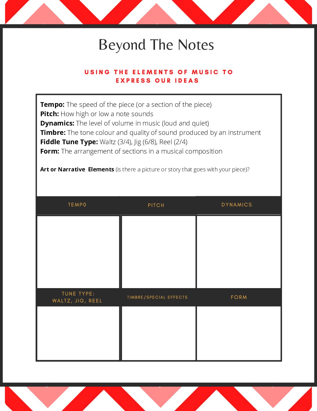 Pour la vidéo, les élèves devaient se présenter de même que présenter leur sujet, le paysage ou l’expérience qui ont inspiré leur récit, remercier Dennis d’avoir partagé son histoire, expliquer comment ils ont utilisé les éléments musicaux pour exprimer leurs idées et décrire brièvement comment ce projet a modifié leur perception de la musique.